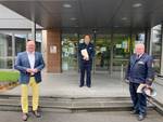 ![]() | Landrat Frank Matiaske hat in beisein von Kreisbrandinspektor Horst Friedrich die Dienstzeiten von stellv. Kreisbrandinspektor Rolf Scheuermann und Kreisbrandmeister Michael Treusch verlängert. |